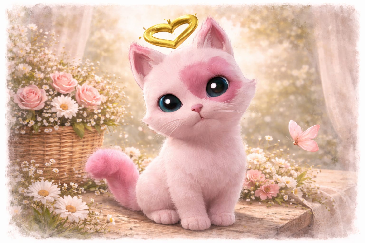 I was really drawn to the cute white style with the pink heart around its eye… already knew it was the cutest thing I'd seen all year… already had my finger hovering over the purchase button.